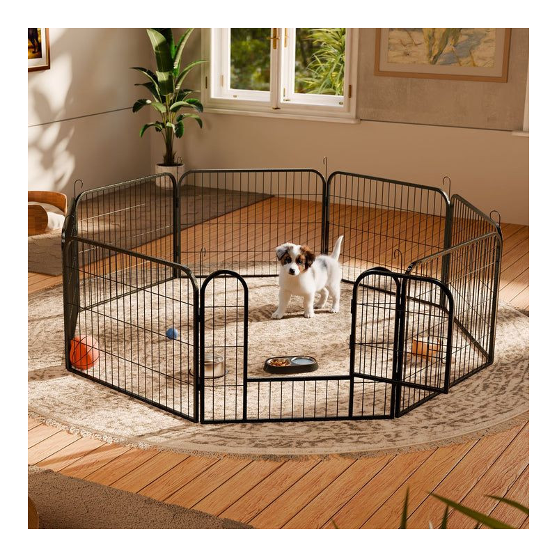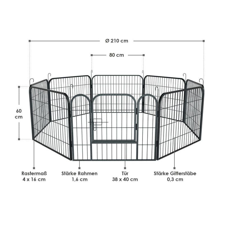 Poskytnite svojim domácim miláčikom bezpečný priestor na hranie a odpočinok. Vysoko kvalitný oceľový výbeh poskytuje dostatok priestoru pre šteniatka, mačiatka a malé zvieratá. Je ľahko použiteľný doma alebo v záhrade a vďaka svojmu flexibilnému systému sa dá prispôsobiť vašim potrebám. Vaše domáce zvieratá si v ňom užijú zábavné a pokojné chvíle, zatiaľ čo vy budete mať istotu, že sú v bezpečí.