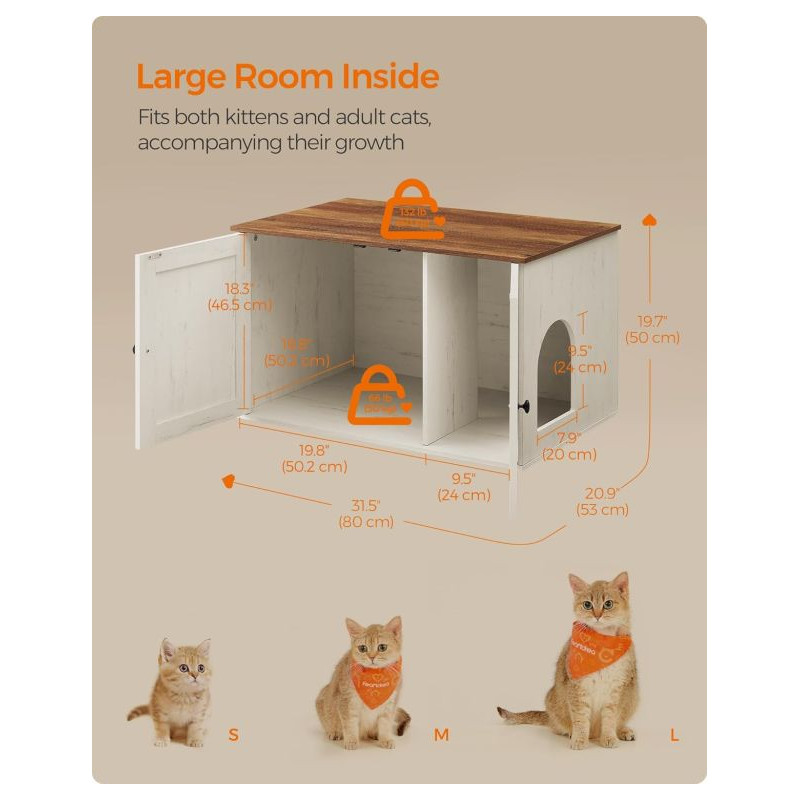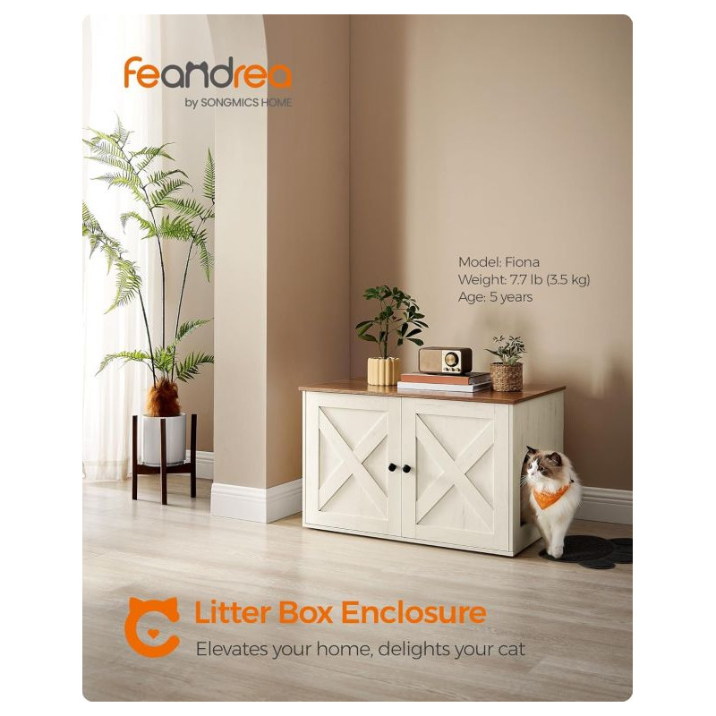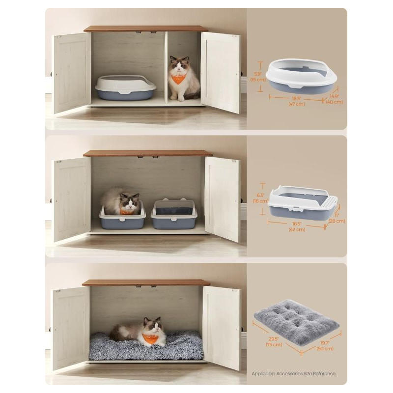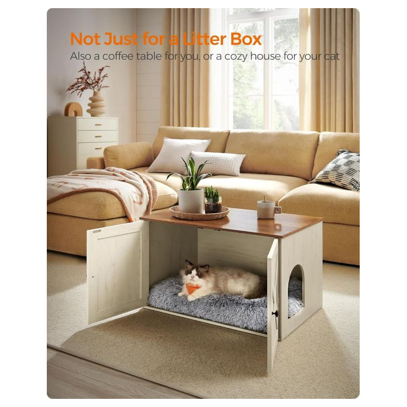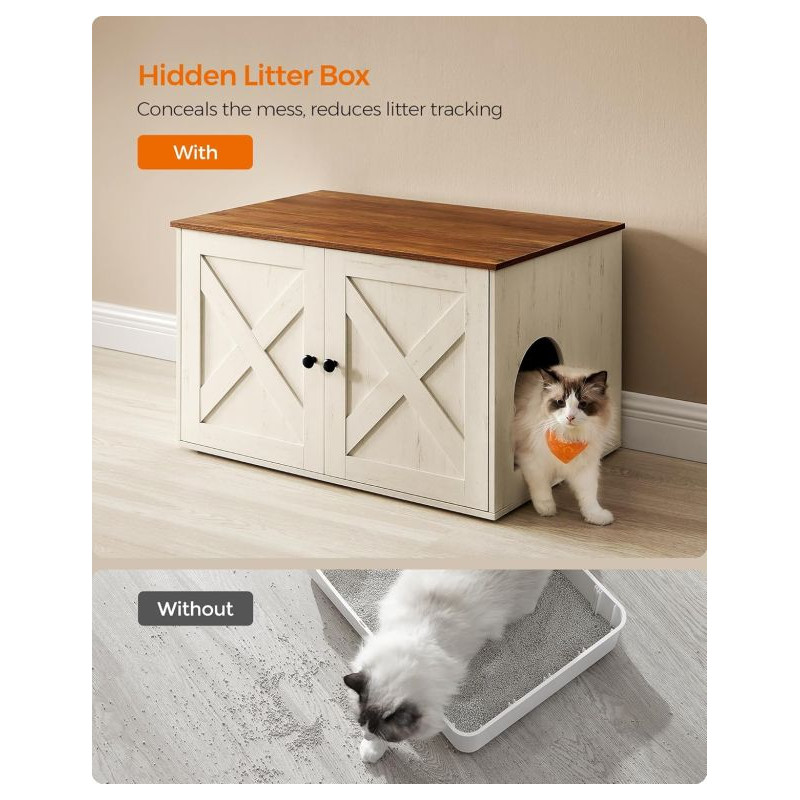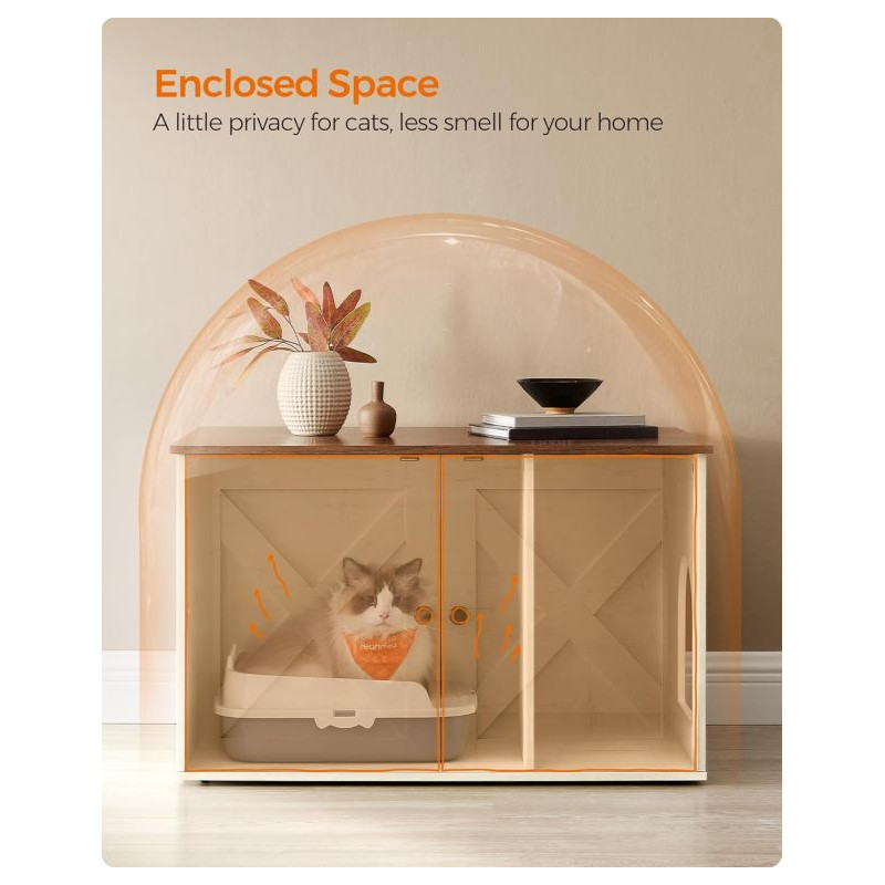 Doprajte svojej mačke súkromie a sebe krásny interiér. Táto skrinka na mačací záchod v bielej a hnedej farbe sa stane štýlovým doplnkom každého domova. Vaša mačka bude mať pokojné miesto a vy sa už nebudete musieť zaoberať pohľadom na nevzhľadný mačací záchod.