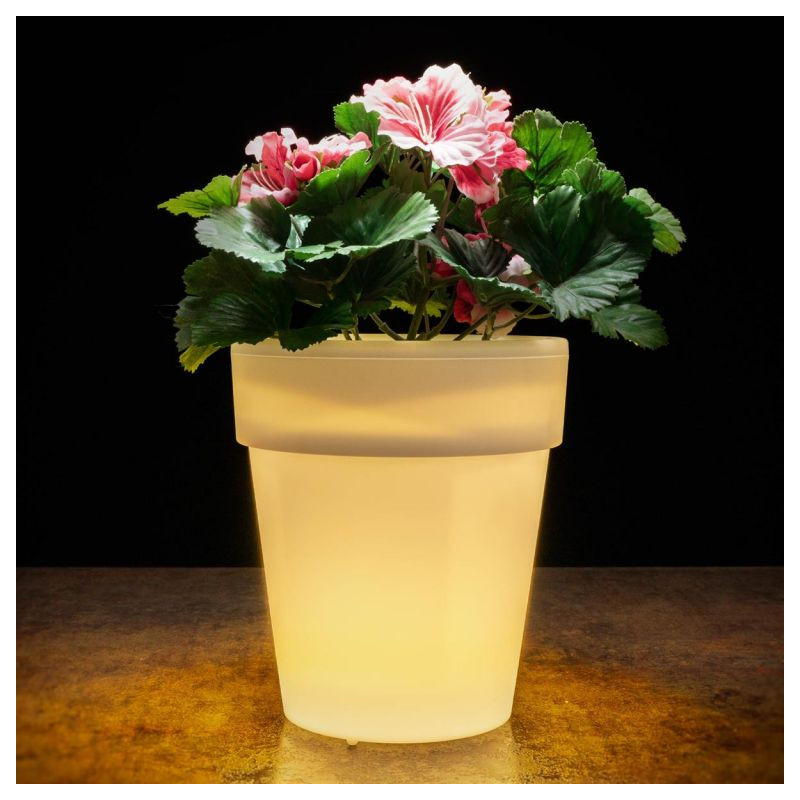 Solárny kvetináč je vybavený 3 LED diódami v teplom bielom svetle. Je stabilný, robustný a odolný poveternostným vplyvom. Možno ho umiestniť ako dekoratívny prvok do záhrady alebo do neho zasadiť rastlinu. Odtok vody je integrovaný. Vďaka integrovanému senzoru stmievania sa solárna dekorácia v noci zapína automaticky a so vstavanou batériou Ni-Mh poskytuje pri plnom nabití až 8 hodín svetla. Spojte niekoľko solárnych kvetináčov medzi sebou a vytvorte neobyčajnú atmosféru v záhrade, na terase alebo v kvetinovom záhone. Kvetináč má na dne odtok vody, takže Vašim dekoratívnym nápadom nič nestojí v ceste.