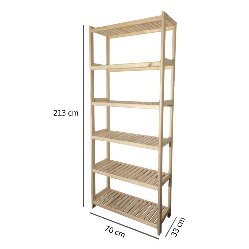 Drevený regál, 6 políc, 213 x 70 x 33 cm