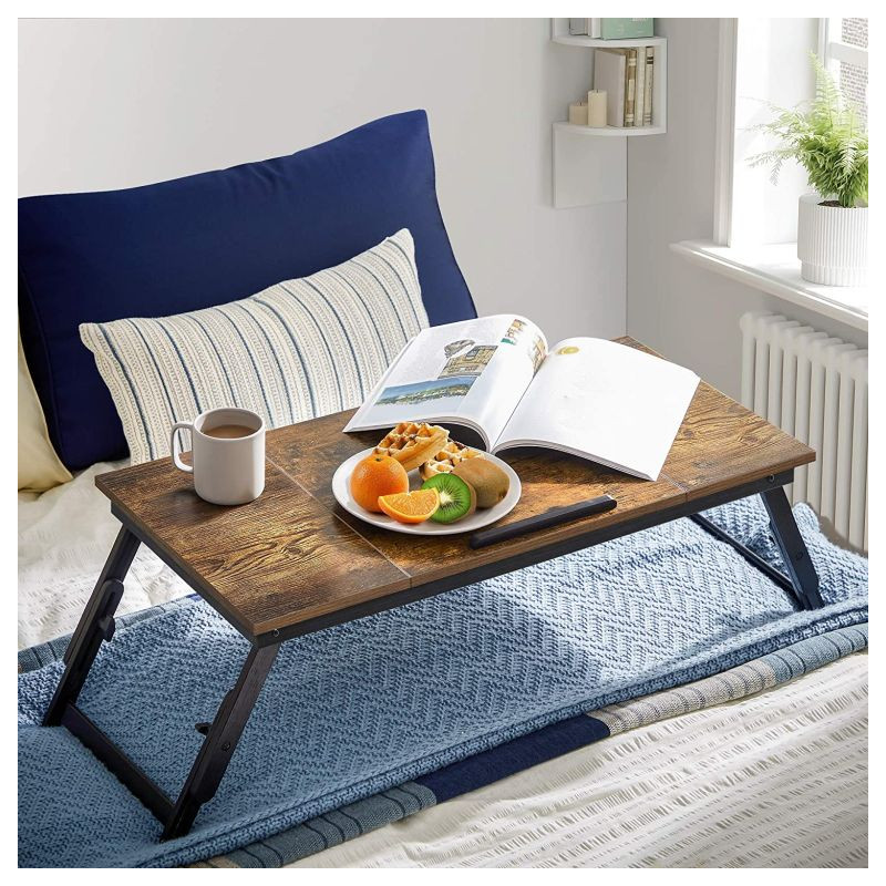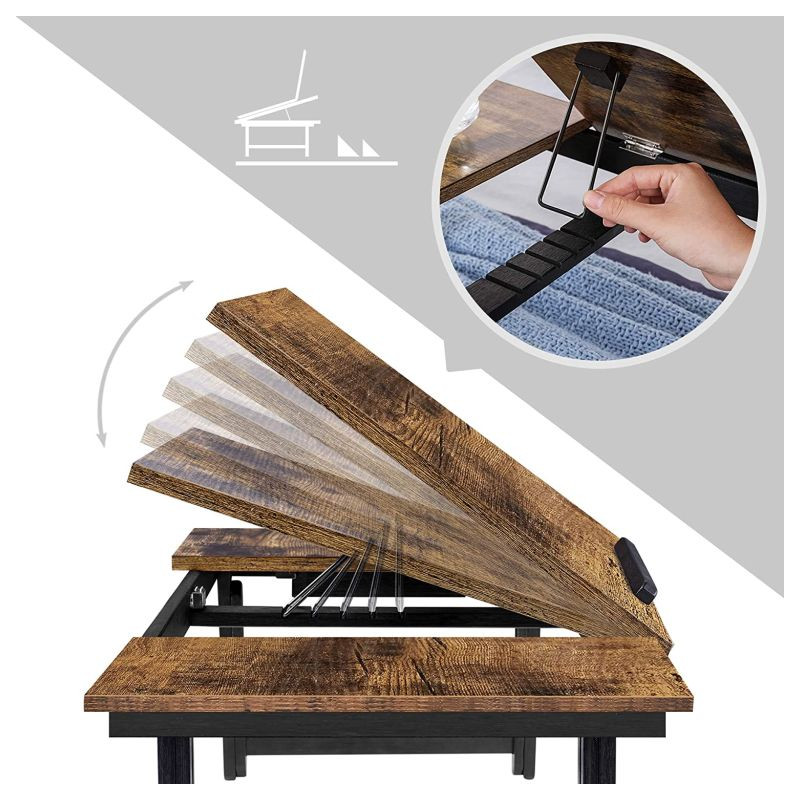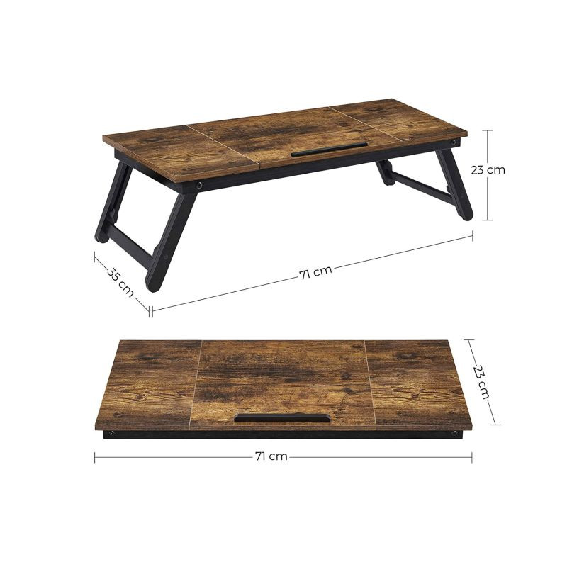 Doprajte si pohodlie a štýl pri práci alebo relaxácii s týmto rustikálnym skladacím stolíkom na notebook. Ideálny na prácu z postele, raňajky alebo tvorivé činnosti na pohovke. Nastaviteľný sklon a výška vám umožňujú prispôsobiť stolík presne vašim potrebám a spríjemniť si každý deň.