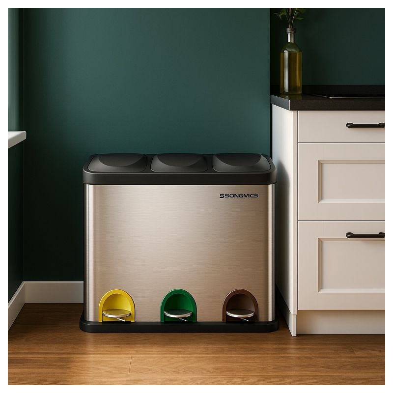 Každodenné triedenie odpadu môže byť ľahké a navyše aj pekne vyzerať. Tento kôš z nerezovej ocele s tromi priehradkami udrží v kuchyni poriadok a čistotu bez toho, aby narušil vzhľad interiéru. Farebne odlíšené pedále pomôžu s orientáciou celej rodine a správne návyky sa tak stanú samozrejmosťou. Elegantný dizajn sa hodí ako do modernej, tak aj do klasickej domácnosti.