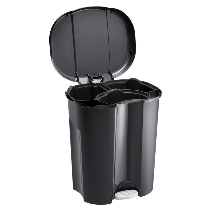Odpadkový kôš na triedenie odpadu. Kôš obsahuje tri vyberateľné nádoby na odpad – 2x15 l, 1x10 l. Pedálový mechanizmus na otváranie veka – funkcia kroku. Tiché zatváranie veka. Vysoko kvalitný materiál a spracovanie od švajčiarskej značky Rotho.
