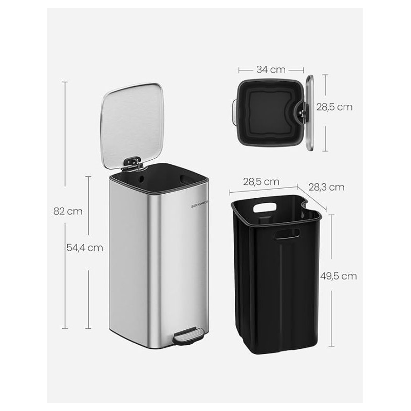 Hľadáte praktické a elegantné riešenie pre svoju kuchyňu? Pedálový kôš SONGMICS s objemom 30 litrov kombinuje moderný dizajn, odolnú oceľovú konštrukciu a funkcie, ktoré uľahčia každodenné používanie. Vďaka tichému soft close zatváraniu a možnosti aretácie veka je vyhadzovanie odpadu pohodlné a bez rušivých zvukov.