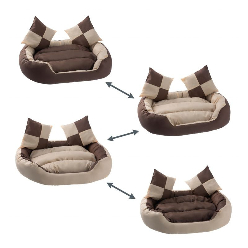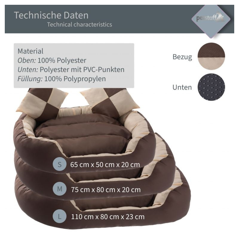 Tento pelech je príjemným miestom na spanie pre psa, mačku alebo iných domácich miláčikov. Náš pelech je vhodný tiež ako doplnok k búde alebo prepravnému boxu. Je obzvlášť pohodlný vďaka mäkkej výplni a odnímateľnému obojstrannému vankúšu, ktorý je šetrný aj ku kĺbom štvornohého priateľa. Kryt je vodoodpudivý, aby sa zabránilo priamemu vniknutiu kvapalín. Celý pelech je možné prať ručne alebo v práčke pri nízkych teplotách. Spodná strana koša pre psov je opatrená ďalšími protišmykovými výstupkami.