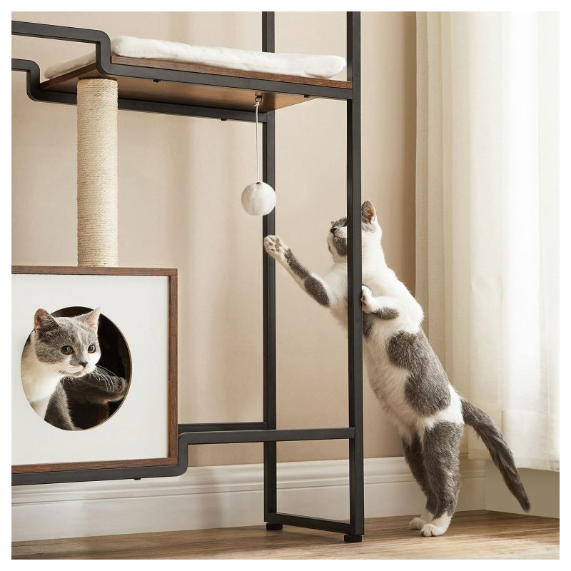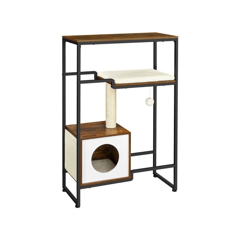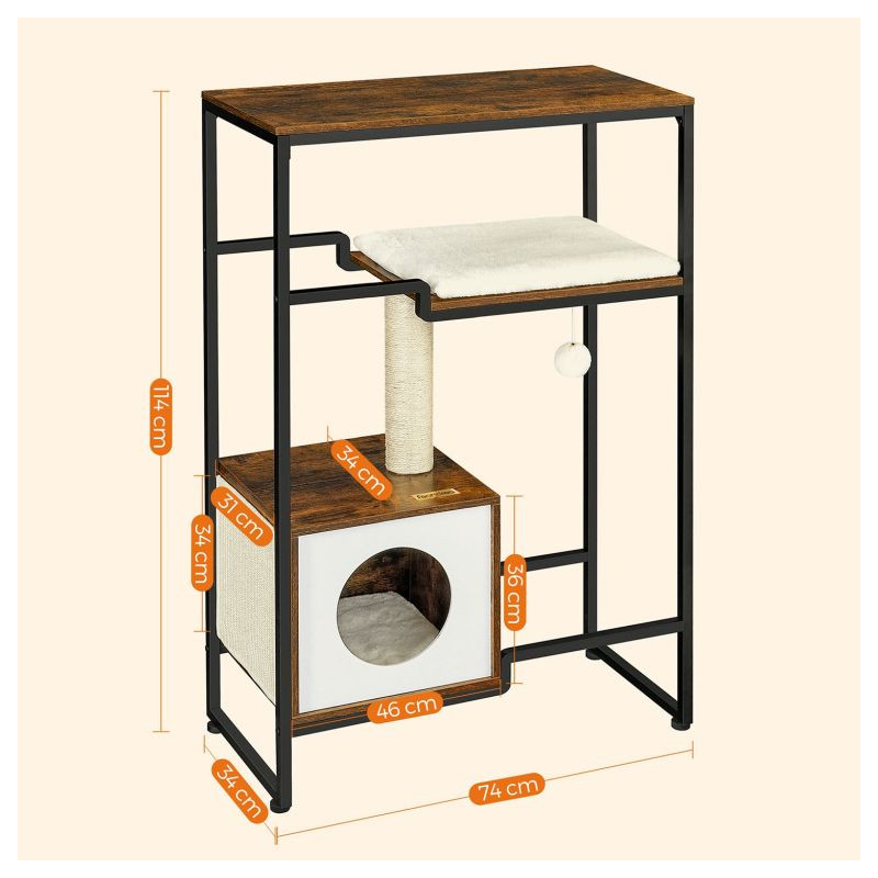 Doprajte svojej mačke pohodlie a štýl v jednom! Tento stromček pre mačky v retro štýle ponúka útulnú jaskyňu, mäkkú plošinu a sisalovú škrabadlovú podložku. Vaše zvieratko si bude užívať pozorovanie okolia, hranie a odpočinok, zatiaľ čo vy môžete hornú policu využiť na dekorácie. Elegantný dizajn sa hodí do každého interiéru a poteší aj tých najnáročnejších majiteľov.