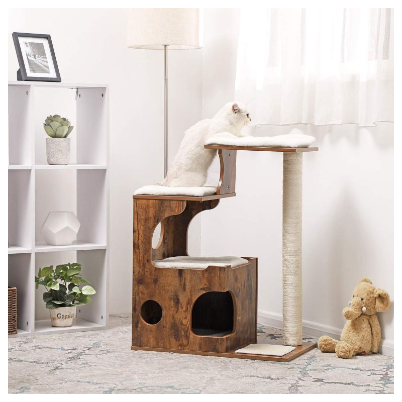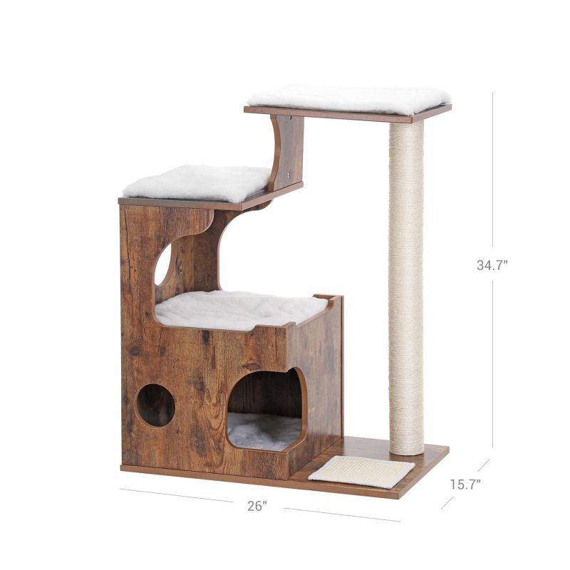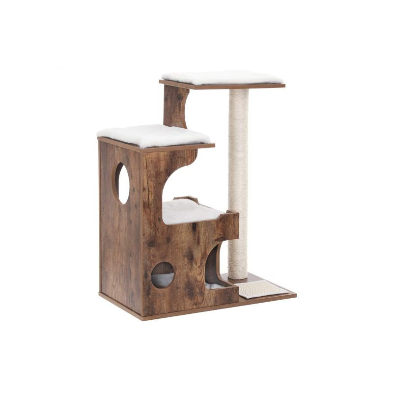 Stabilná konštrukcia z MDF dosiek zaisťuje bezpečnosť aj pre aktívne mačky. Sisalový stĺp a škrabacia podložka chráni váš nábytok pred poškodením. Vankúšiky je možné ľahko odopnúť a vyprať, údržba je teda jednoduchá a rýchla.