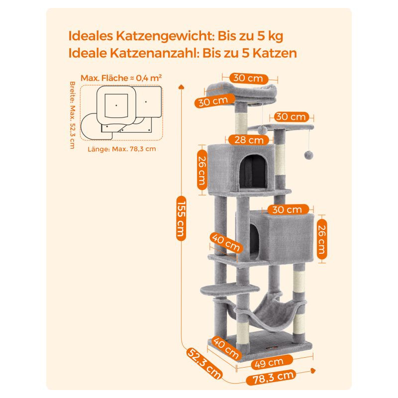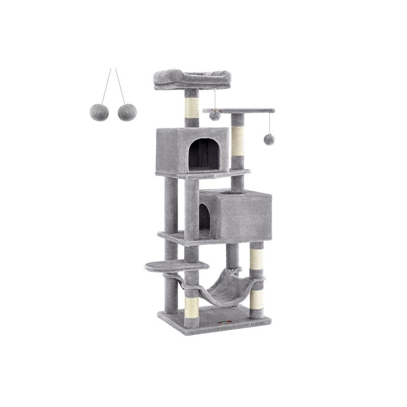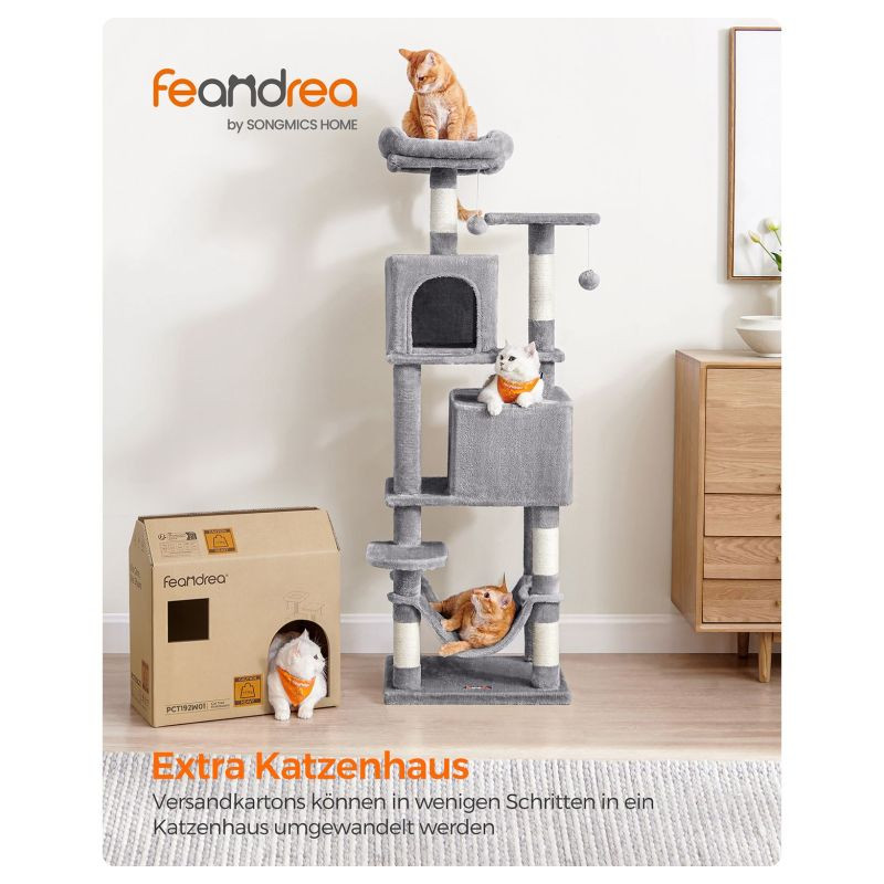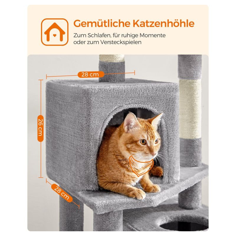 Doprajte svojej mačke luxusný priestor na hranie, škrabanie a oddych. Tento vysoký škrabací stĺpik v elegantnej svetlosivej farbe ponúka útulné postele, visiacu hojdačku a zábavné loptičky, ktoré potešia každú mačku a spríjemnia váš domov.