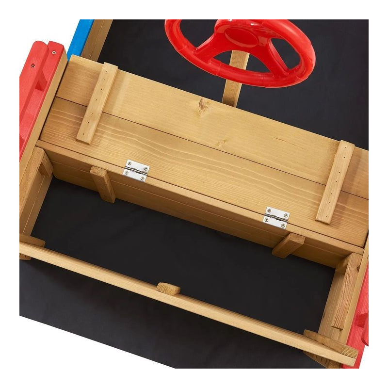 Kvalitné jedľové drevo a odolné materiály garantujú dlhú životnosť. Vodeodolná strecha a ochranná podložka udržia piesok suchý a čistý. Montáž je jednoduchá vďaka prehľadnému návodu, údržba nenáročná.
