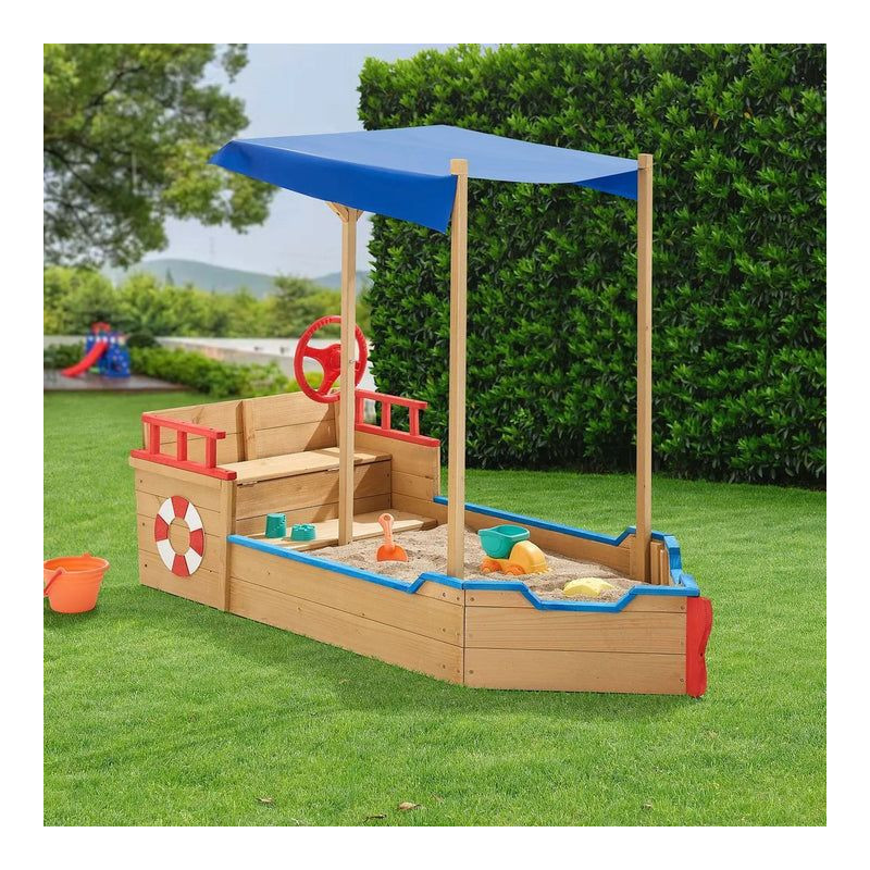 Vytvorte deťom miesto, kde sa sny menia na dobrodružstvo! Drevené pieskovisko v tvare pirátskej lode s lavičkou a kormidlom inšpiruje k hre a rozvíja detskú predstavivosť. Strieška s UV ochranou zaistí bezpečie aj v horúcich dňoch a deti si užijú spoločné chvíle na čerstvom vzduchu.