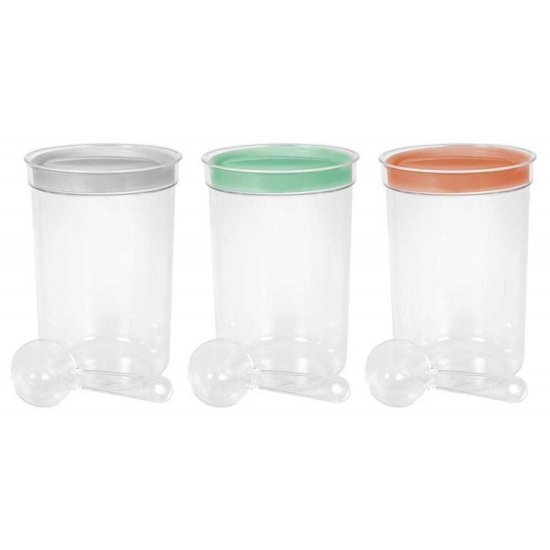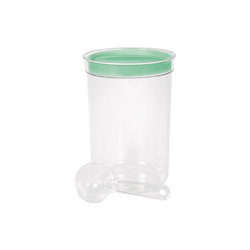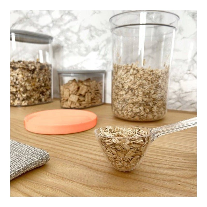 Praktická dóza s vekom a odmerkou. Dóza na ovsené vločky, orechy, sušienky, cukor, soľ, kávu, čaj, atď. Vyrobená z vysoko kvalitného plastu s objemom 1,7 l. Môžete si vybrať z farebného mixu - viečka farby broskyňovej, mentolovej či svetlo šedej.