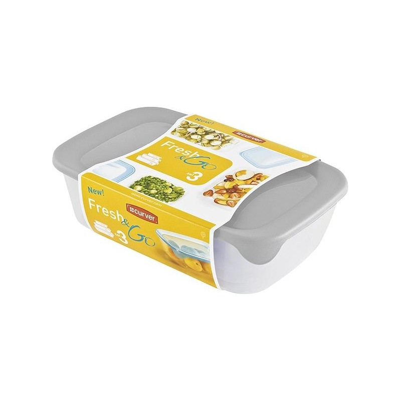 Curver Fresh and Go je rad kvalitných potravinových boxov, ktoré sa vyrábajú v EÚ. Tento rad je vyrábaný s dôrazom na vysokú kvalitu a nezávadnosť pre uchovanie potravín, ohrievanie jedla alebo jeho zamrazovanie. Dózy Fresh and Go majú kvalitné viečka, ktoré na dóze pevne držia. Je možné ich použiť pri ohrievaní jedla v mikrovlnných rúrach, umývať v umývačkách riadu aj na zamrazovanie potravín. Môžete si vybrať z farebného mixu - viečka farby: broskyňové, mentolové či svetlo šedé.
