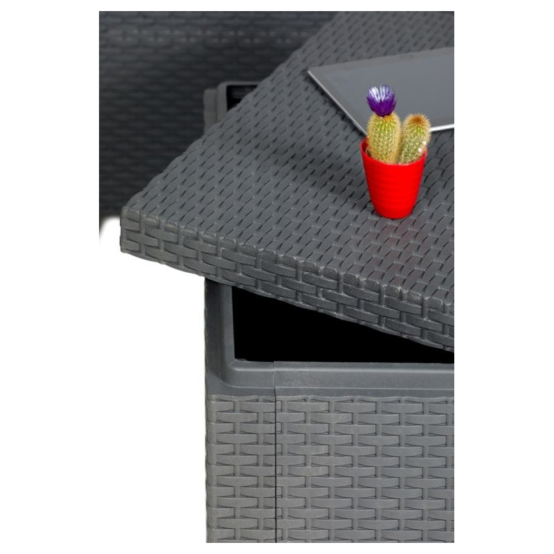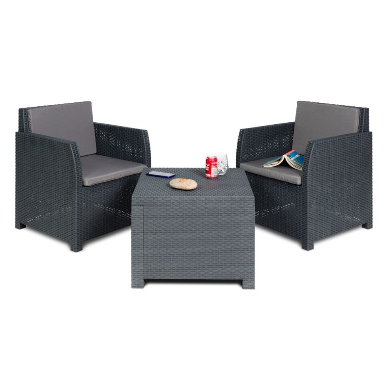 Vytvorte si oázu pokoja vo svojej záhrade s modernou súpravou DIANA 2 SEATERS v grafitovej farbe. Pohodlné kreslá s mäkkými vankúšmi a praktický stolík s úložným priestorom vám umožnia vychutnať si chvíle pohody na čerstvom vzduchu, či už pri rannej káve alebo večernom posedení vo dvojici.