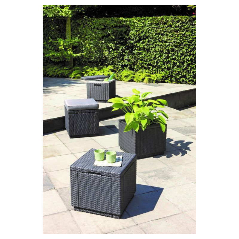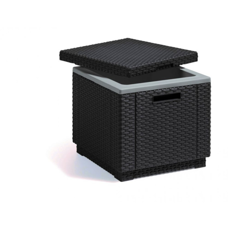 Chladnička s obsahom viac ako 7 litrov, taburet k ľubovoľnej záhradnej zostave, úložný box a ďalšie využitie - to všetko je CUBE. Cube má elegantný dizajn a skvele vyzerajúcu ratanovú štruktúru. Veľmi odolný voči nepriazni počasia a UV žiareniu. Jednoduchá údržba!