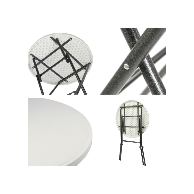 Stôl je ľahký, ľahko prenosný a rýchlo zložiteľný. Kovová konštrukcia zaisťuje stabilitu, zatiaľ čo plastová doska je odolná a ľahko sa udržuje. Poťah z pružnej tkaniny je možné prať do 30 ° C a vďaka zosilneným koncom vydrží aj časté používanie.