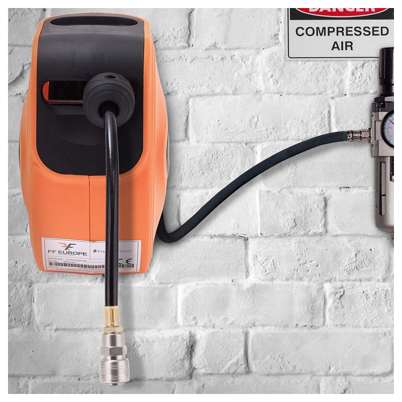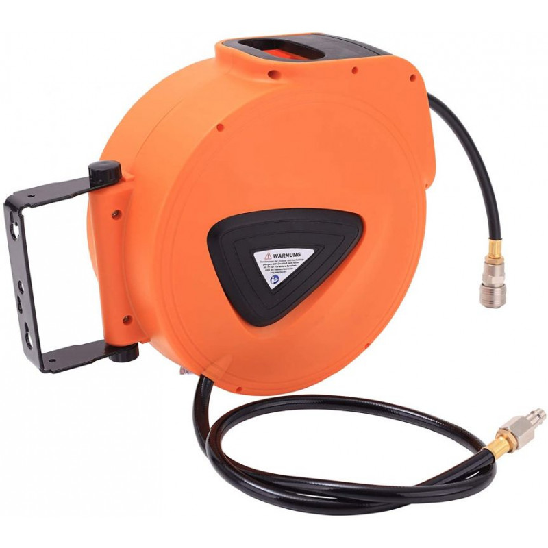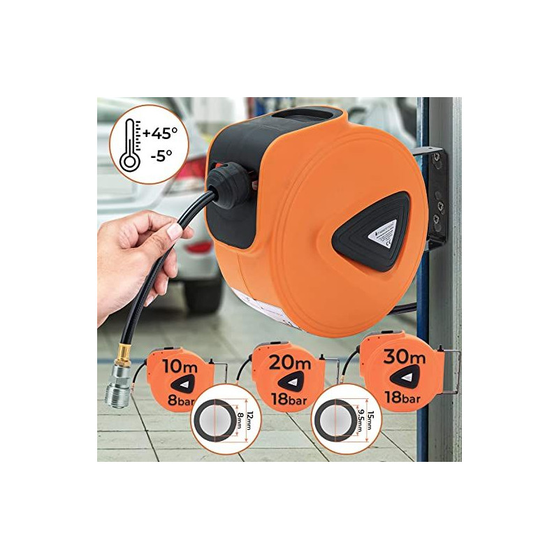 Navijak na stlačený vzduch pre všetky bežné zariadenia na stlačený vzduch. Kombinuje poriadok a funkčnosť. 30 m dlhá hadica je vnútri bubna dobre chránená a má funkciu automatického navíjania. Pomocou guľovej zarážky môžete hadicu upevniť v požadovanej dĺžke. Pri používaní nie sú potrebné batérie ani elektrina.