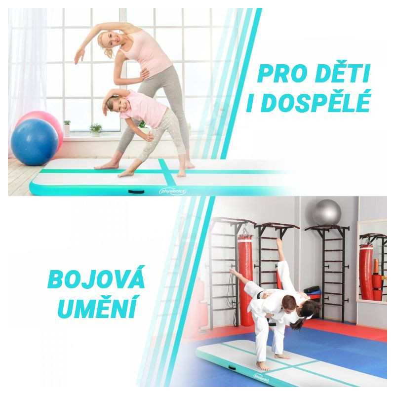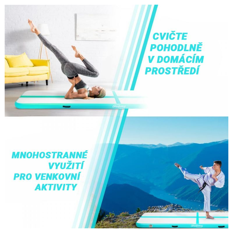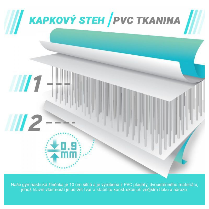 Nafukovacia gymnastická žinenka je univerzálny tréningový nástroj vhodný pre širokú škálu športových aktivít, ako je gymnastika, cheerleading, parkour, bojové umenia, školské športy a ďalšie. Tiež je možné ju využiť v bazéne. Táto žinenka je vyrobená z dvojstenného materiálu, ktorého hlavnou vlastnosťou je udržať tvar a stabilitu konštrukcie pri vonkajšom tlaku a náraze.