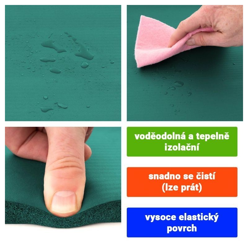 Vysoko kvalitná gymnastická podložka z peny šetrnej k pokožke. Je tiež mimoriadne protišmyková a po použití ju možno ľahko znova zrolovať. Fitness podložka je odolná proti roztrhnutiu a pošmyknutiu je tiež vodeodolná a tepelne izolačná. Bez zmäkčovadiel (bez ftalátov). Tlmí tiež nárazy a zvuk pri náraze, takže môžete chrániť svoje kĺby počas cvičenia. Táto podložka je vďaka svojim tepelnoizolačným vlastnostiam ideálna aj na kempovanie a ako základňa pre lôžko pre hostí.