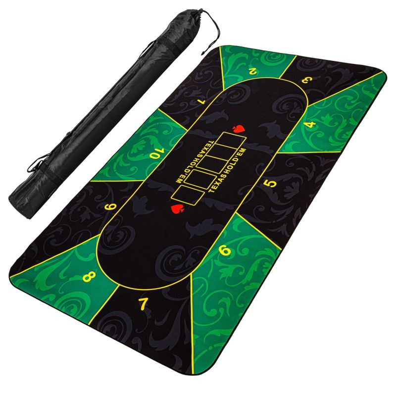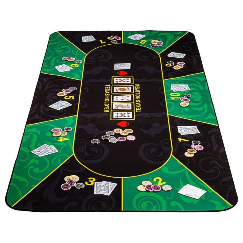 Pokerová podložka je vhodná až pre 10 hráčov. Predná strana je vyrobená z vodoodpudivého polyamidu. Materiál je príjemne mäkký a hladký na dotyk (podobne ako podložka pod myš). Zadná strana je vyrobená z protišmykového prírodného kaučuku - gumový povlak zabraňuje skĺznutiu podložky. Podložku možno zrolovať, aby sa ušetrilo miesto, a možno ju ľahko vziať kamkoľvek prostredníctvom priloženej tašky.