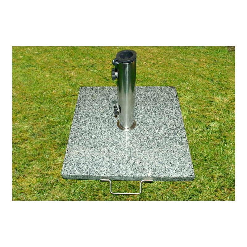 Stabilný a elegantný stojan na slnečníky z leštenej žuly v kombinácii s nerezom. Je vhodný pre slnečníky s priemerom až do 3 metrov. Dodáva sa s 2 plastovými objímkami s vnútorným priemerom 39 a 50 mm pre uchytenie slnečníka. Pomocou dvoch skrutiek sa tyč uchytí do stojana. Tento stojan je vhodný pre slnečníky s priemerom tyče až 50 mm.