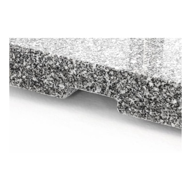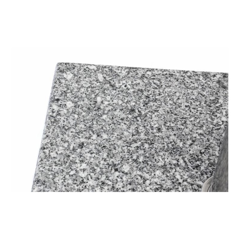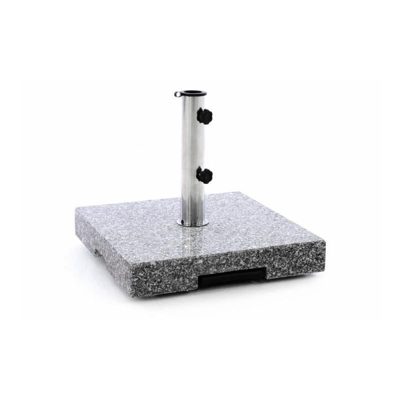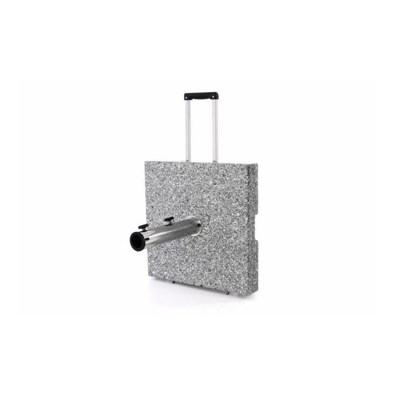 Masívny a kvalitný stojan na slnečník z leštenej žuly v kombinácii s ušľachtilou oceľou. Zabudované kolieska na spodnej strane a madlo z ušľachtilej ocele umiestnené po stranách uľahčia transport.