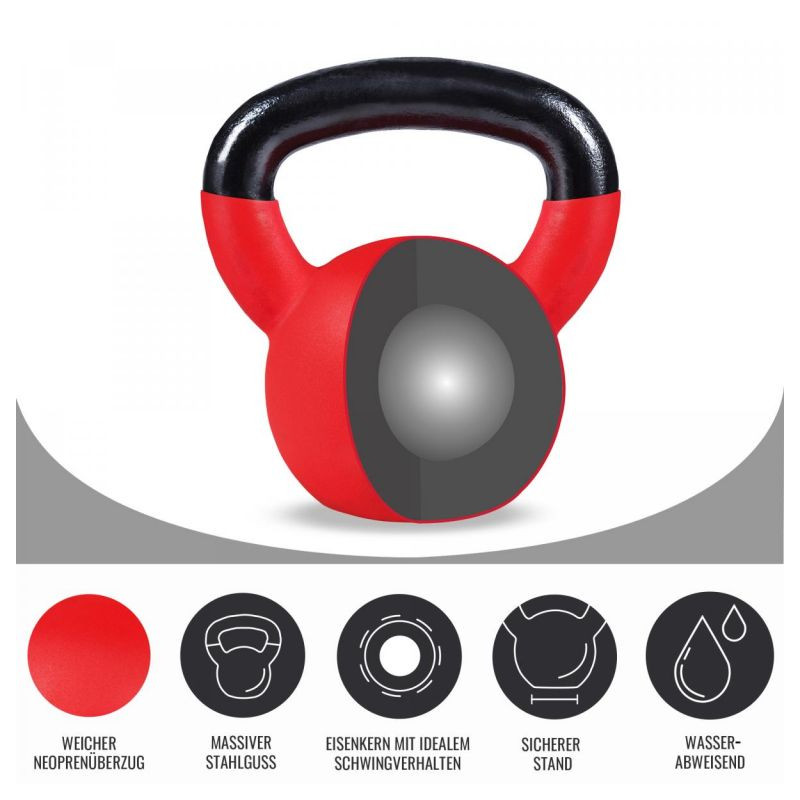 Kettlebell je možné použiť pre ľahké cvičenia s mnohými opakovaniami alebo pre tréning začiatočníkov. Používajte ju na vykonávanie hojdačiek medzi nohami alebo v bokoch. Než prejdete k ťažším váham, nacvičte presné príťahy, tlaky a premiestnenie. Tento kettlebell má na spodnej časti vinylový povlak, vďaka tomu je kettlebell tichý a chráni podlahu v cvičebni. Guľa kettlebellu je na spodnej strane sploštená, aby ste mohli zariadenie bezpečne odložiť. Jeho solídne spracovanie zaručuje dlhú životnosť a dobré výsledky cvičenia.