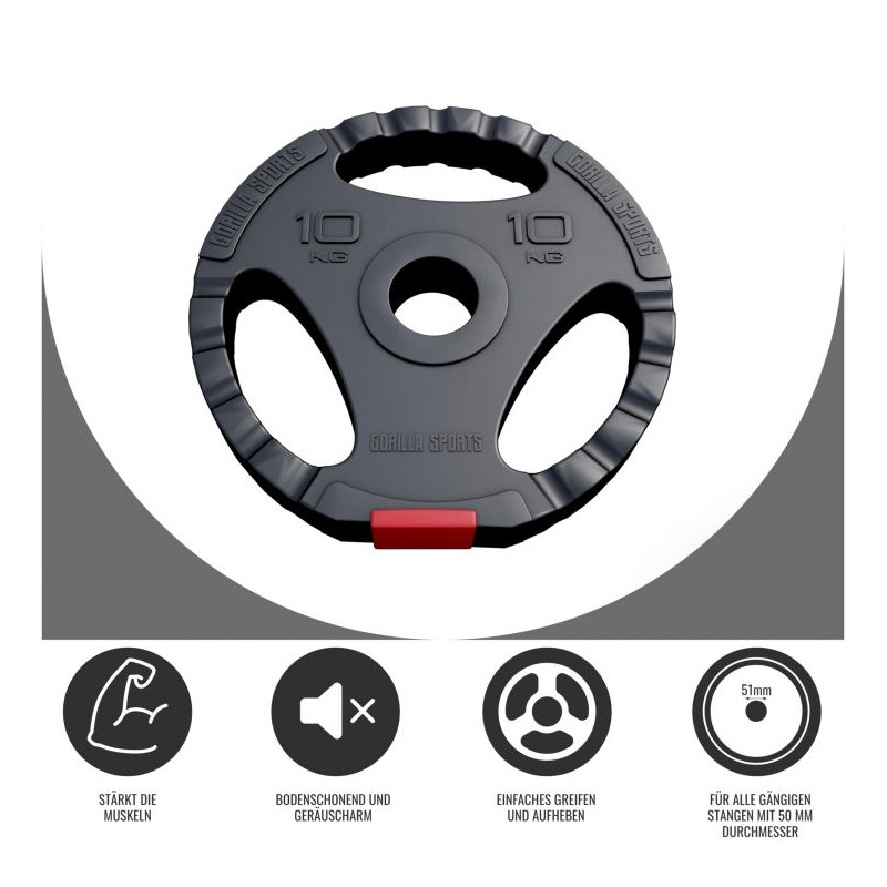 Plastový záťažový kotúč je ideálny pre začiatočníkov. Plastové kotúče s 30/31 mm sú už známe. Táto klasika je teraz k dispozícii aj ako verzia Olympia Gripper s 50/51 mm. Veľmi dobre sa hodí na cielený tréning rôznych svalových skupín, ako sú triceps, biceps alebo svaly hrudníka. Robustné ak podlahe šetrné plastové kotúče sú k dispozícii v rôznych verziách.