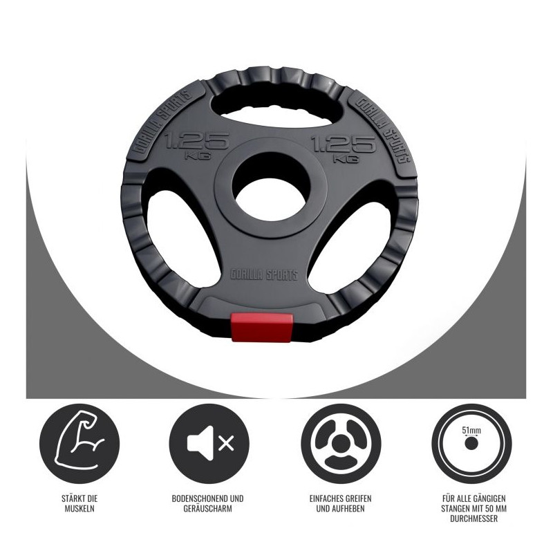 Plastový záťažový kotúč je ideálny pre začiatočníkov. Plastové kotúče s 30/31 mm sú už známe. Táto klasika je teraz k dispozícii aj ako verzia Olympia Gripper s 50/51 mm. Veľmi dobre sa hodí na cielený tréning rôznych svalových skupín, ako sú triceps, biceps alebo svaly hrudníka. Robustné ak podlahe šetrné plastové kotúče sú k dispozícii v rôznych verziách.