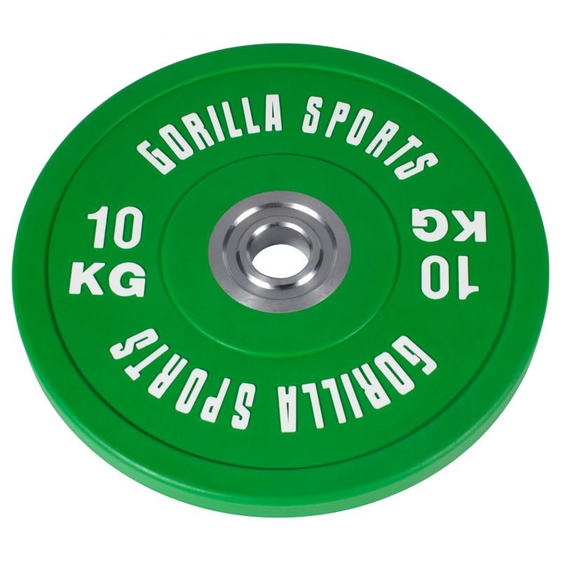Profesionálny bumper kotúč o hmotnosti 5 kg, 10 kg, 15 kg, 20 kg a 25 kg od Gorilla Sports s farebne odlíšenými váhami.