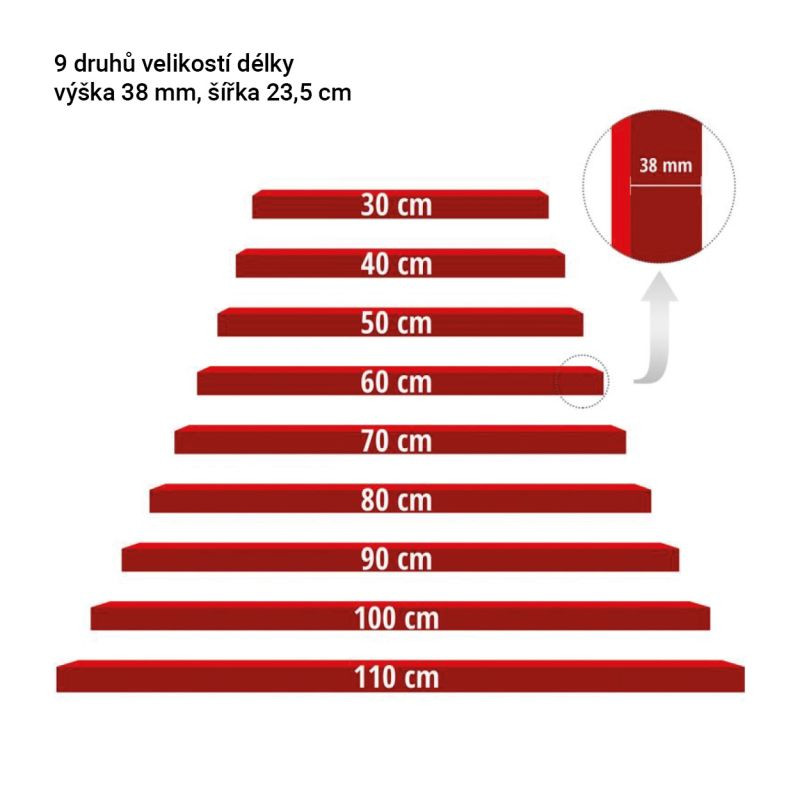 Oživte svoj interiér týmito policami. Ich uchytenie je na montovanom profile priamo do steny, tak nie je vidieť žiadne uchytenie. Drevovláknitá doska je testovaná podľa normy na škodlivé látky.