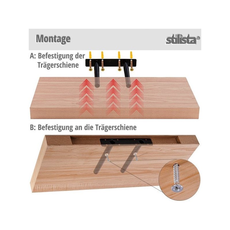 Moderná nástenná polica značky Stilista produktovej rady VOLATO sa vďaka levitujúcemu efektu stane nádherným doplnkom Vašej izby. Vďaka maximálnej nosnosti 10 kg ju môžete použiť takmer všade. Či už na dekoračné predmety v obývacej izbe, na kuchárske knihy v kuchyni, na učebnice v detskej izbe alebo na potraviny v špajzi.