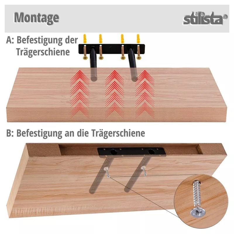 Moderná nástenná polica značky Stilista produktovej rady VOLATO sa vďaka levitujúcemu efektu stane nádherným doplnkom Vašej izby. Vďaka maximálnej nosnosti 10 kg ju môžete použiť takmer všade. Či už na dekoračné predmety v obývacej izbe, na kuchárske knihy v kuchyni, na učebnice v detskej izbe alebo na potraviny v špajzi.