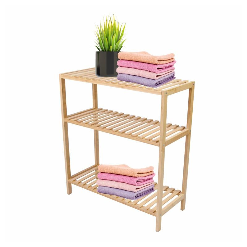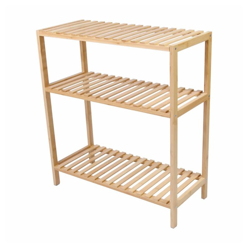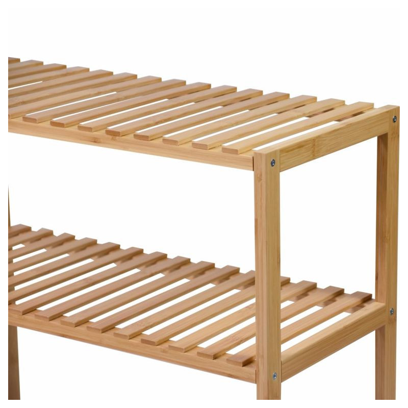 Či už v kúpeľni, predsieni, obývacej izbe, špajze, pracovni, detskej izbe, dielni alebo pivnici, tento všestranný bambusový regál nájde svoje miesto kdekoľvek. Ponúka dostatok úložného priestoru a je veľmi stabilný. Vďaka priloženým plsteným klzákom sa nešmýka a poskytuje bezpečné držanie. Masívne drevo unesie zaťaženie až 50 kg. To zodpovedá cca 10 kg na polici. To znamená, že do tejto vysoko kvalitnej police je možné bez problémov uložiť aj veľké predmety. Prírodné bambusové drevo zaisťuje moderný, elegantný štýl vášho domova.