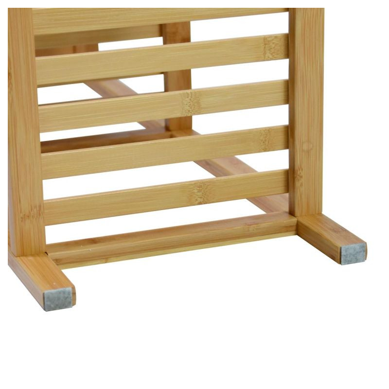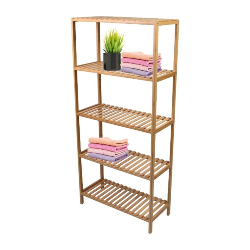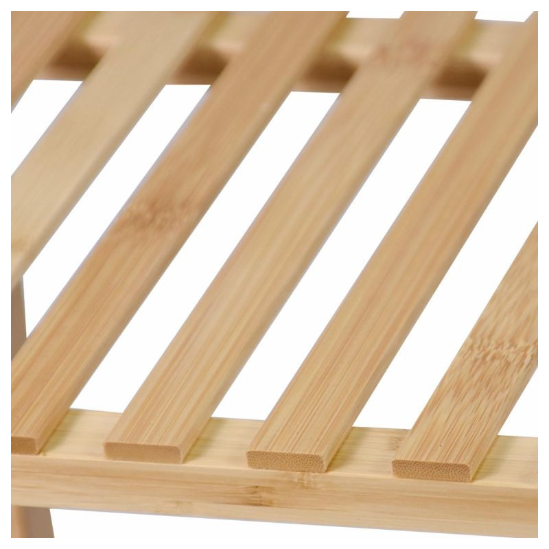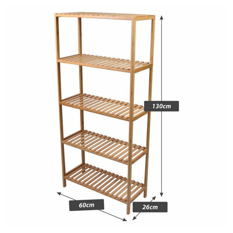 Či už v kúpeľni, predsieni, obývacej izbe, špajze, pracovni, detskej izbe, dielni alebo pivnici, tento všestranný bambusový regál nájde svoje miesto kdekoľvek. Ponúka dostatok úložného priestoru a je veľmi stabilný. Vďaka priloženým plsteným klzákom sa nešmýka a poskytuje bezpečné držanie. Masívne drevo unesie zaťaženie až 50 kg. To zodpovedá cca 10 kg na polici. To znamená, že do tejto vysoko kvalitnej police je možné bez problémov uložiť aj veľké predmety. Prírodné bambusové drevo zaisťuje moderný, elegantný štýl vášho domova.