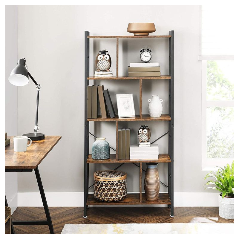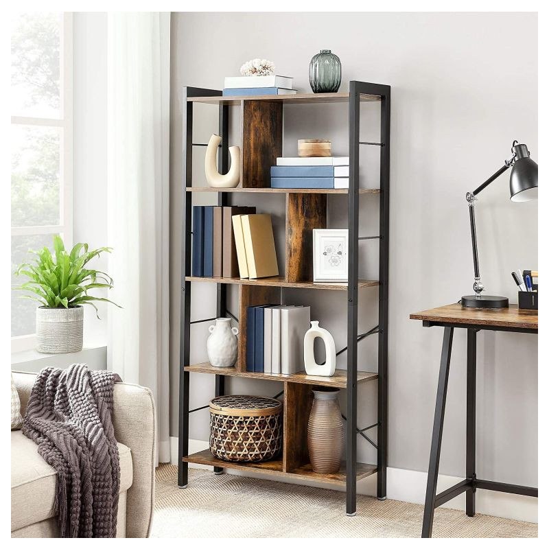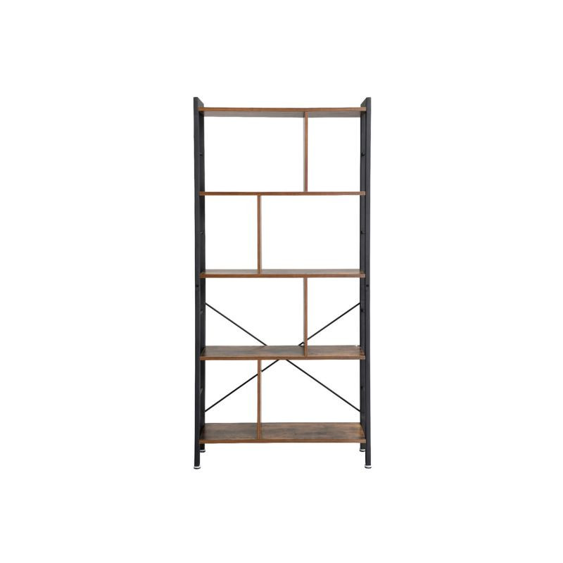 Dajte svojim knihám priestor, ktorý si zaslúži. Tento 4-poschodový regál v rustikálnom štýle dodá interiéru charakter a teplo dreva, zatiaľ čo čierna oceľ mu prepožičia moderný industriálny vzhľad. Hodí sa do obývacej izby, pracovne i kancelárie a skvele ladí s rôznymi typmi nábytku.