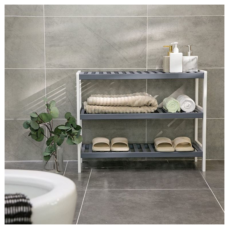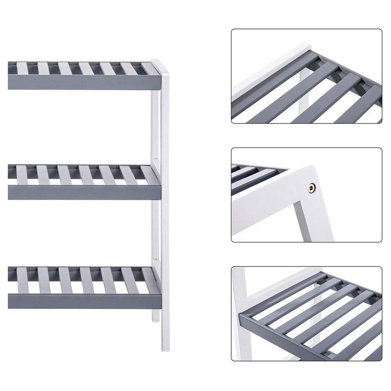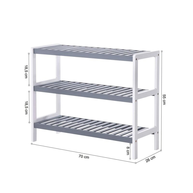 Vnesiete do svojho domova harmóniu a poriadok s touto štýlovou botníkovou poličkou z prírodného bambusu. Jej čistý dizajn a kombinácia bielej a šedej farby doplnia každý interiér, zatiaľ čo tri priestranné police poskytujú dostatok miesta pre vaše topánky a drobné predmety. Vychutnajte si jednoduchosť a praktickosť vo vašom každodennom živote.
