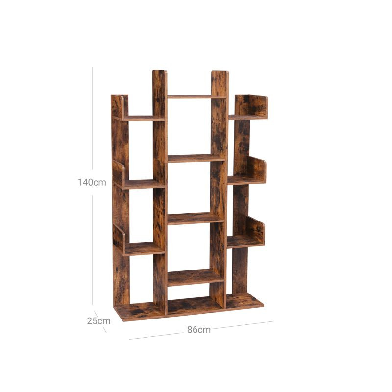 Vnesiete kúsok prírody do svojho domova s touto originálnou knižnicou v tvare stromu. Jej rustikálna hnedá povrchová úprava s jemne zaoblenými rohmi vytvára teplú a útulnú atmosféru, čím sa stáva dekoratívnym doplnkom vašej obývačky, spálne alebo kancelárie. 13 priestranných políc vám umožňuje vytvoriť jedinečnú knižnicu alebo štýlovú dekoráciu s kvetinami a doplnkami.