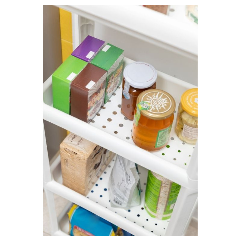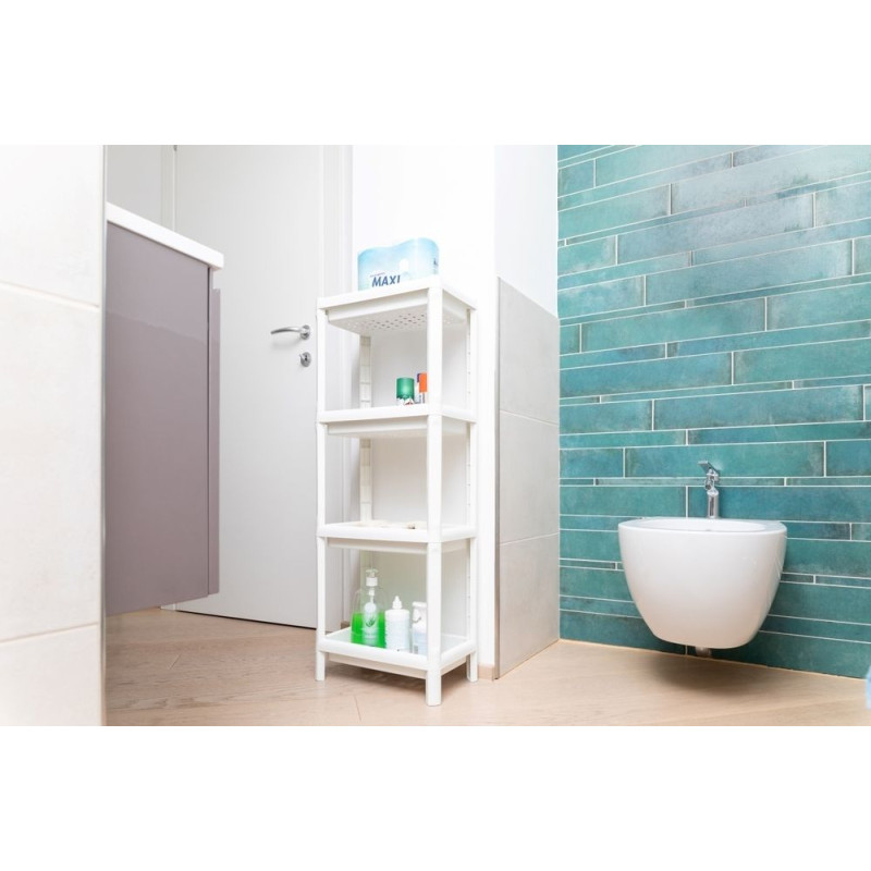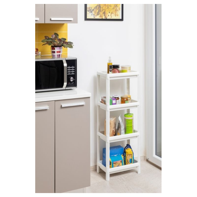 Multifunkčný štvorposchodový regál predstavuje praktický a štýlový spôsob pre efektívne využitie menších priestorov a pre jednoduchú organizáciu vo Vašom dome. Ponúka dodatočný priestor na uloženie potravín, kuchynských pomôcok či iných drobností napríklad v kúpeľni.