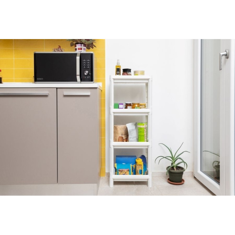 - Elegantné biele prevedenie: Praktický a elegantný vzhľad sa ľahko prispôsobí akejkoľvek kuchyni, špajze či kúpeľni.