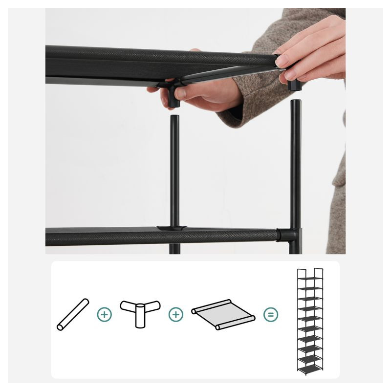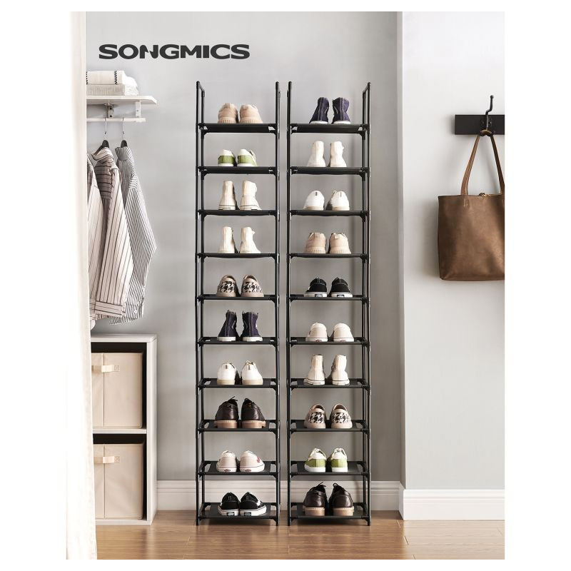 Objavte inteligentné riešenie, ktoré udrží vašu obuv vždy v poriadku. Botník SONGMICS ponúka desať poschodí s dostatočným priestorom pre celú zbierku topánok, pričom svojim štíhlym dizajnom šetrí miesto v predsieni, spálni či šatni. Vďaka čiernemu prevedeniu sa ľahko zladí s akýmkoľvek interiérom.