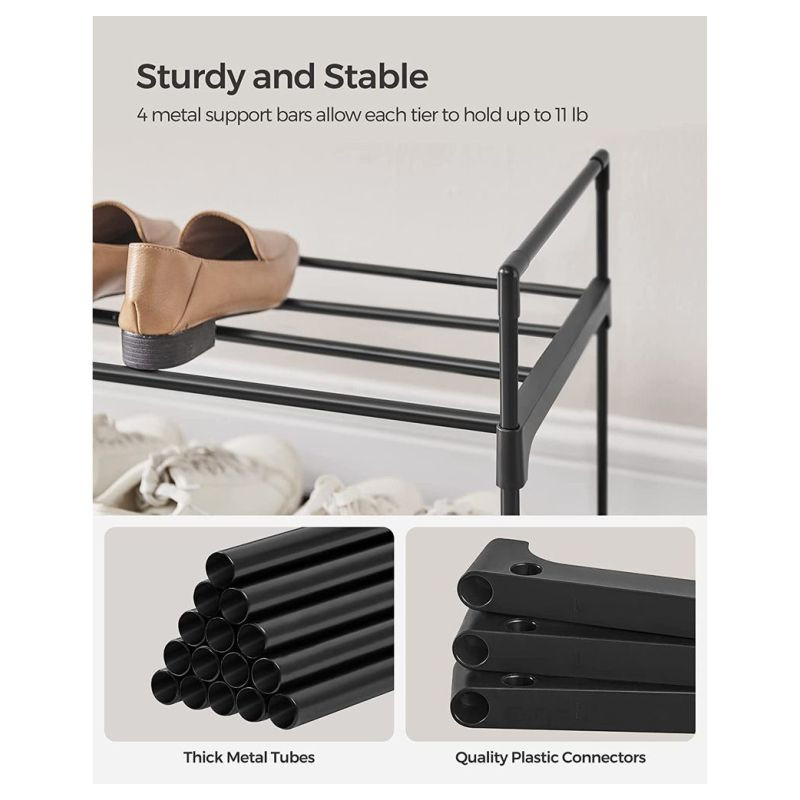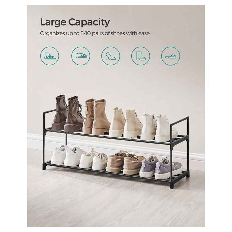 Udržujte svoj domov uprataný a štýlový s kovovým 2poschodovým stojanom SONGMICS. Ideálna pre predsiene, spálne či obývacie izby, pomáha rýchlo a prehľadne uložiť až 10 párov topánok. Vďaka modernému čiernemu dizajnu sa hodí do akéhokoľvek interiéru a šetrí cenný priestor.