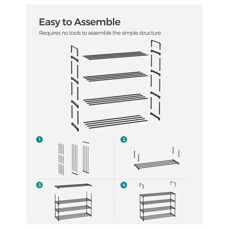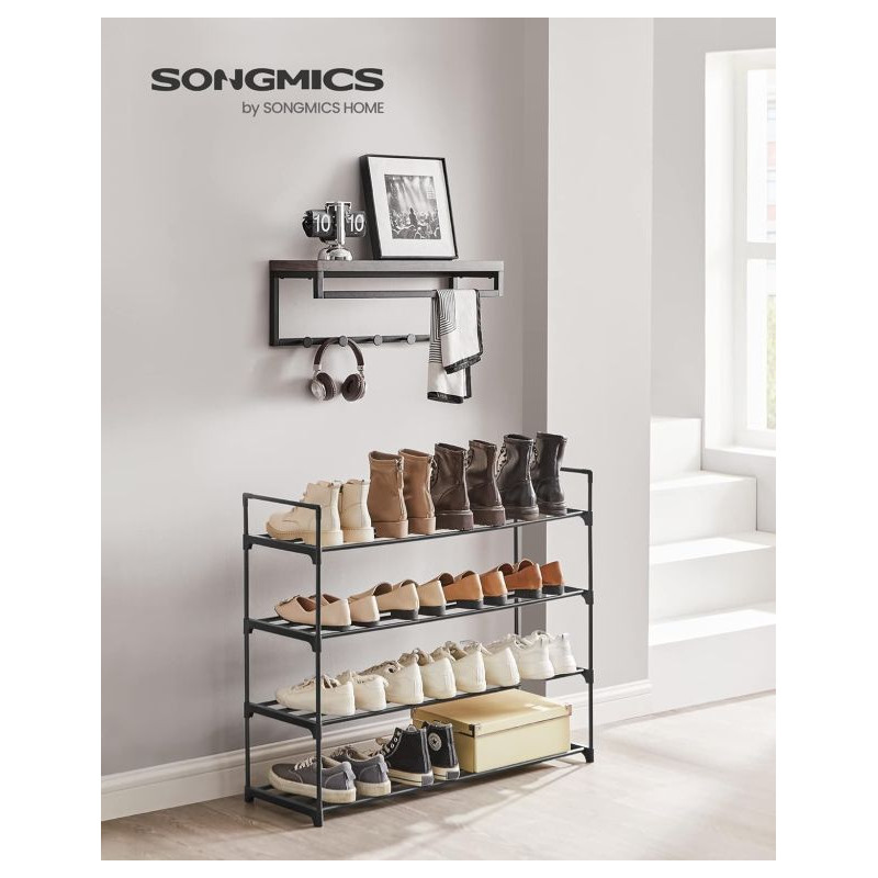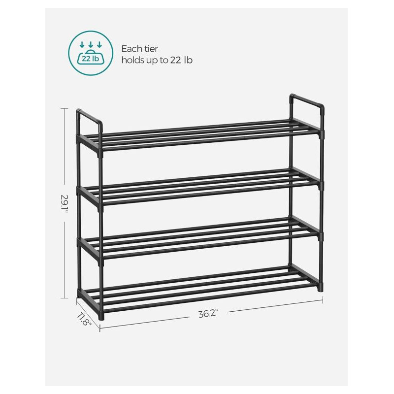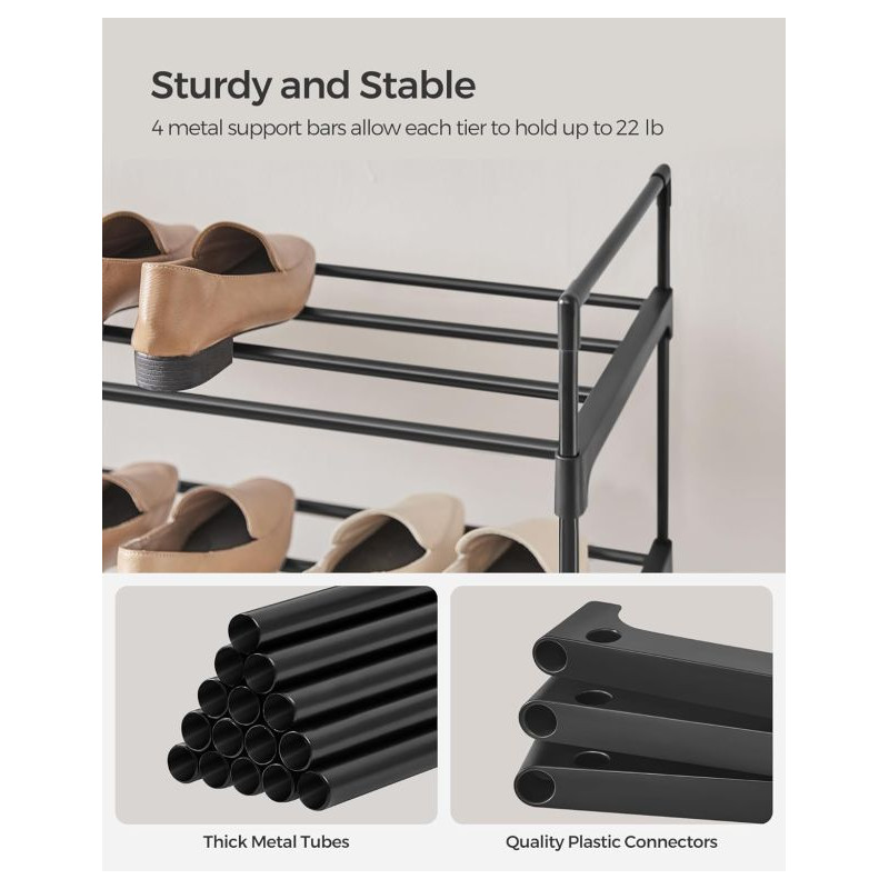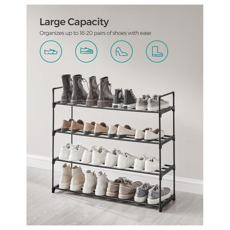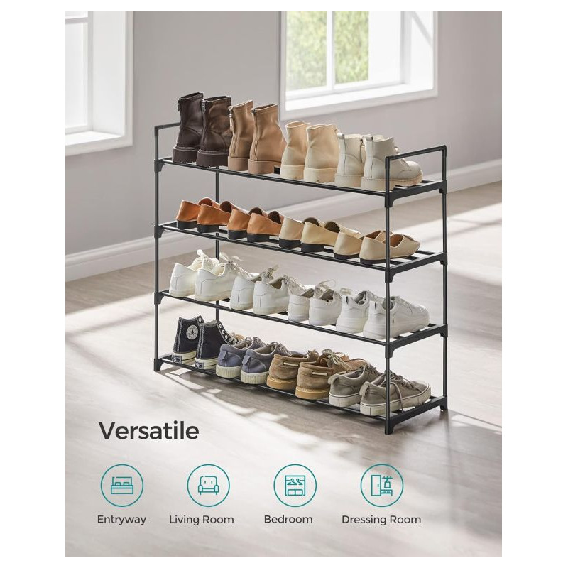 Vytvorte si domov bez neporiadku a užite si pohodlie, kedy máte všetky topánky prehľadne usporiadané. Moderný čierny botník so štyrmi poschodiami ponúka dostatok miesta pre celú rodinu a vďaka svojmu dizajnu sa hodí do každej miestnosti.