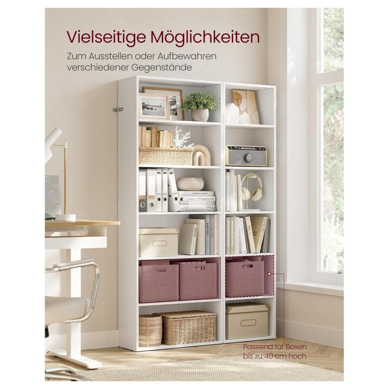 Oživte svoj domov elegantnou jednoduchosťou – táto úzka knižnica v bielom prevedení prináša vzdušnosť a poriadok do každej miestnosti. Šesť otvorených priehradok poskytuje dostatok priestoru pre knihy, dekorácie aj kvety, a vďaka nastaviteľnej výške políc si všetko ľahko prispôsobíte svojim potrebám.