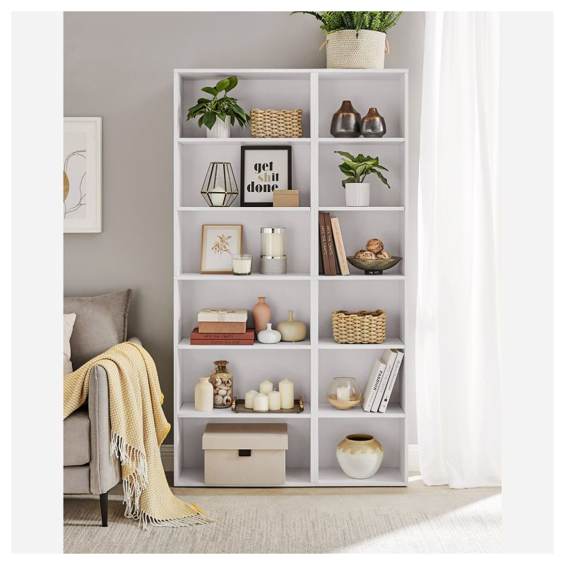 Šesť úložných úrovní umožňuje efektívne využitie priestoru. Police sú výškovo nastaviteľné (okrem strednej), takže do knižnice ľahko uložíte aj väčšie predmety. Kvalitná drevotrieska zaisťuje stabilitu a dlhú životnosť. Montáž zvládnete ľahko vďaka jasnému návodu.