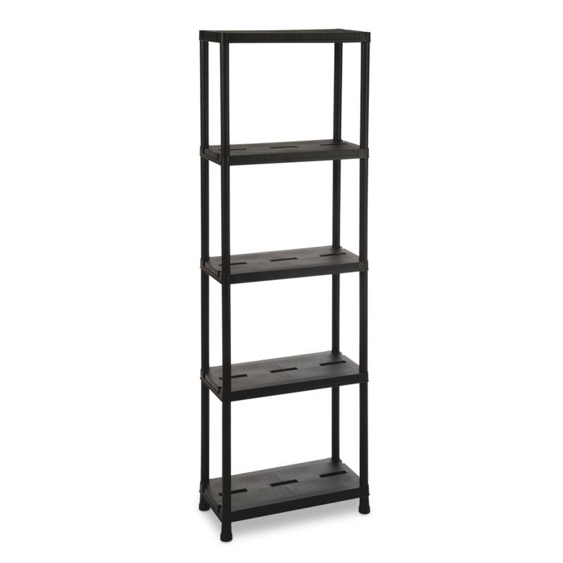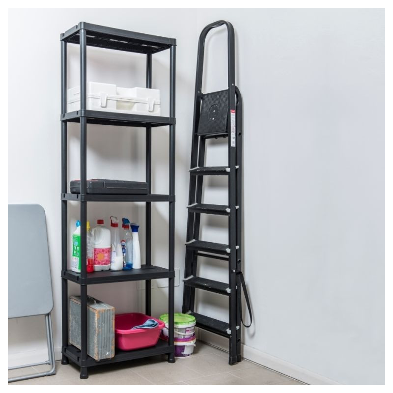 Dodajte svojmu priestoru poriadok a moderný vzhľad s týmto čiernym plastovým regálom. Vďaka piatim policám a univerzálnemu využitiu je skvelým pomocníkom do garáže, dielne aj domácnosti. Odolný materiál zaručí, že vám bude slúžiť dlhé roky.