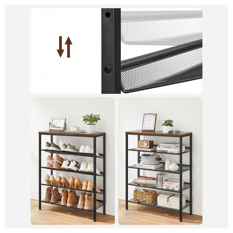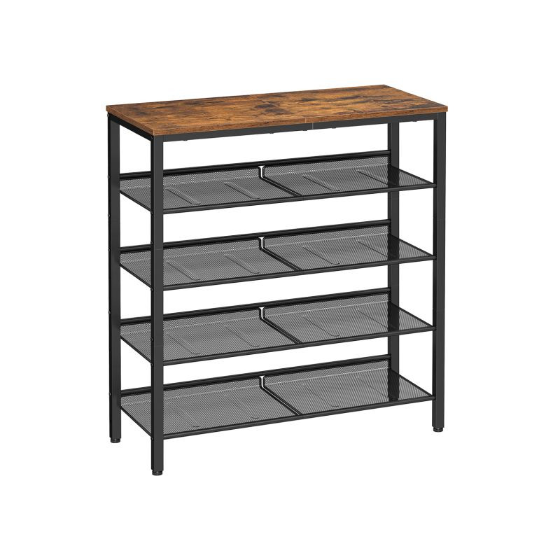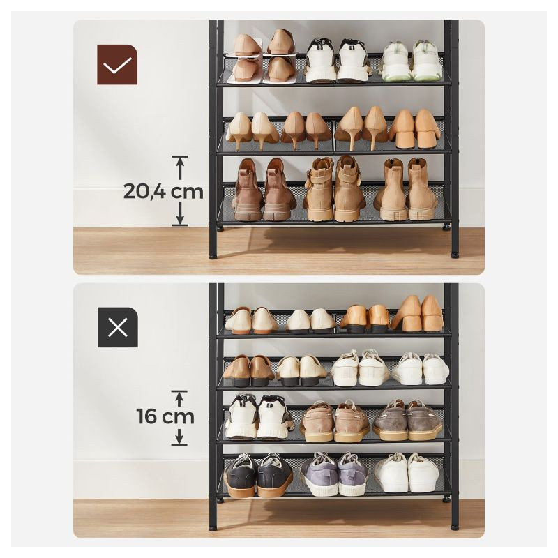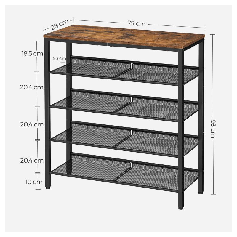 Stojan na topánky je vyrobený z odolnej ocele a vysoko kvalitnej drevotrieskovej dosky, čo zaručuje pevnosť a dlhú životnosť. Police je možné podľa potreby nastaviť, montáž je jednoduchá a údržba rýchla.