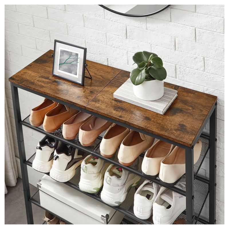 Oživte svoj domov praktickou a štýlovou botníkovou poličkou, ktorá ponúka dostatok priestoru pre všetky vaše topánky. Kombinácia kovu a dreva jej dodáva moderný, ale útulný vzhľad, vďaka čomu sa hodí do každého domova.