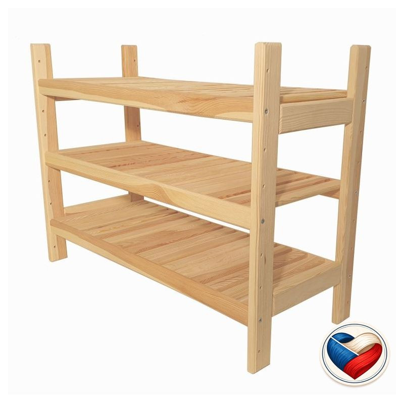 Drevená policová regálová zostava s tromi policami je ideálna, ak chcete veci šikovne usporiadať aj na menšom priestore. Skvele poslúži v komore, kúpeľni, šatni, pracovni alebo na chalupe – na košíky, úložné boxy, kozmetiku, uteráky aj zásoby. Vďaka jednotným rozmerom ho navyše môžete kombinovať s ďalšími regálmi rovnakej šírky a hĺbky a postupne si vytvoriť úložný systém presne podľa potreby. Každý kus vzniká ručne v českej stolárskej dielni v Krušných horách na západe Čiech, takže máte doma poctivý výrobok z prírodného dreva.