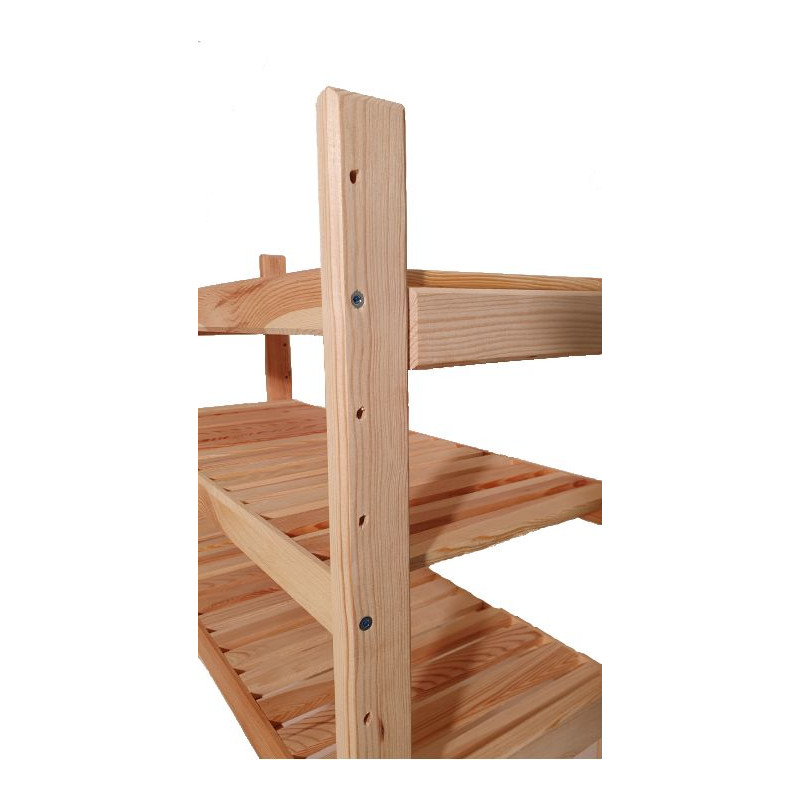 Regál je vyrobený z borovicového dreva bez povrchovej úpravy a ponúka výhodu nastaviteľnosti – police je možné posúvať v 7,5 cm krokoch, takže sa prispôsobia výške uložených vecí. Každá polica unesie až 25 kg. Montáž je jednoduchá a rýchla, všetko potrebné nájdete v krabici a nepotrebujete žiadne náradie. Regál sa dodáva rozložený.