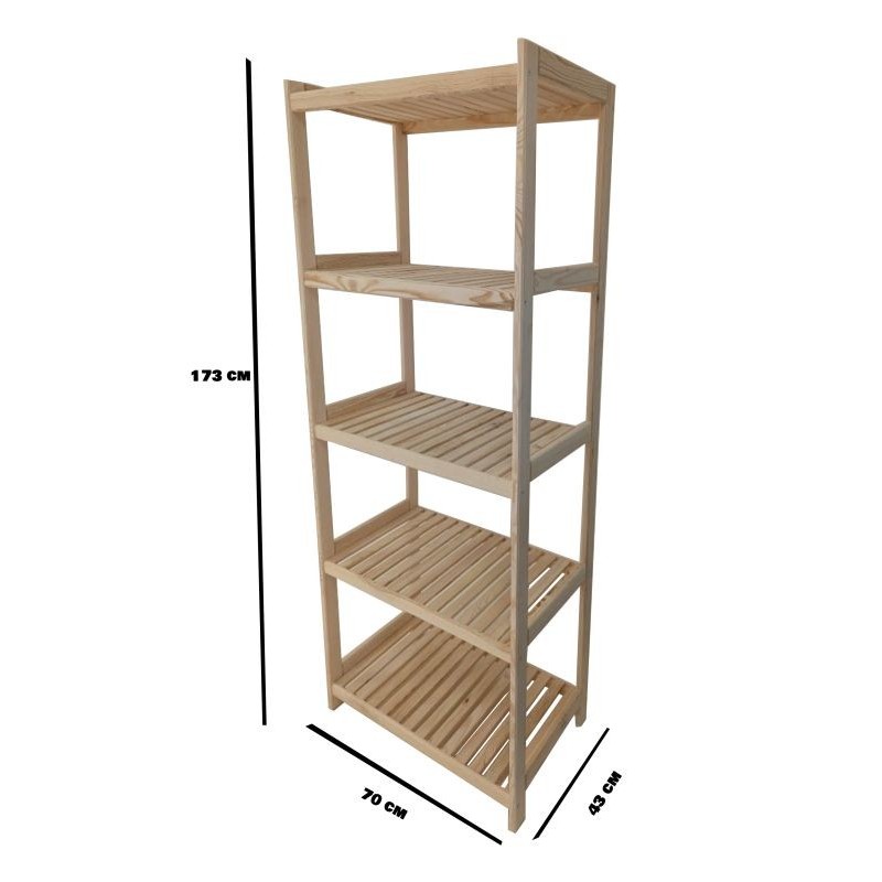 Drevený regál s 5 policami, 173 x 70 x 43 cm